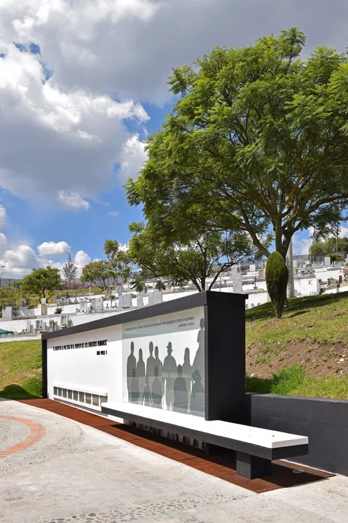 Proyecto encargado por la Municipalidad de Cuenca a través de su Empresa Municipal de Servicios de Cementerios, Salas de Velaciones y Exequias de la ciudad de Cuenca (EMUCE-EP) y las 9 familias que perdieron a sus seres queridos en cuestionadas operaciones policiales, esperando que estas acciones no sean olvidadas y que los nombres de las víctimas sean reclamados con un monumento a los Derechos Humanos. El sitio designado dentro del cementerio municipal consistió en una rotonda con un terreno inclinado en su lado norte. La escultura central, una mano convertida en la Paloma de la paz, se levanta en el medio de la rotonda, mientras que una pared de 11 metros de largo se encuentra contra la pendiente. La pared contiene una frase pronunciada por el Papa Juan Pablo II y las urnas de las víctimas. El proyecto se insertó en el contexto de una manera sutil mediante el uso de una geometría simple y los mismos colores que las construcciones circundantes. El monumento incluye un banco donde las personas pueden descansar y recordar a sus familias.
